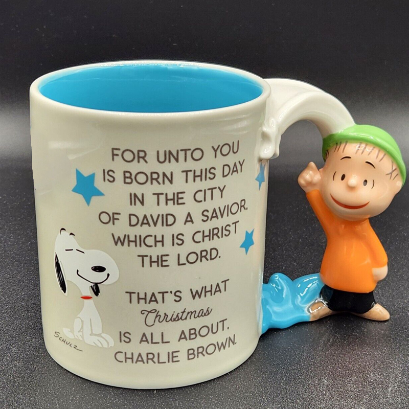 🥰Share the true meaning of Christmas with a friend or family member when you give this inspirational Peanuts ceramic mug with Linus and his blanket sculpted into the handle.
