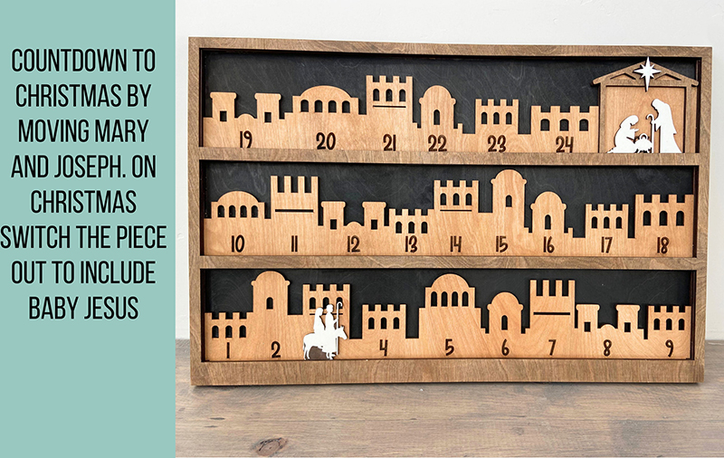 💖With this religious holiday sign, move Mary and Joseph along their journey to Bethlehem up until Christmas where the piece switches out to a nativity scene.